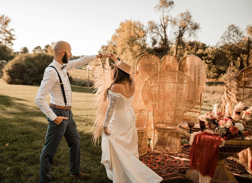 Boho and moody lounge furniture, backdrops, decor and styled setups for weddings, baby showers and celebrations across Michigan and Metro Detroit.